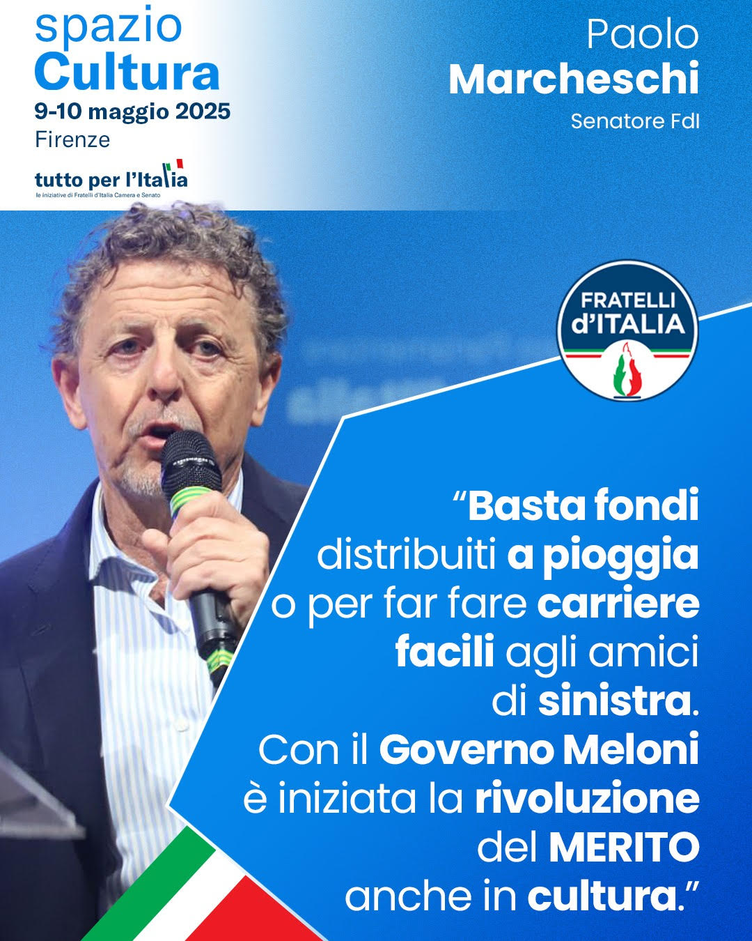 “Le risorse pubbliche devono essere destinate alla conservazione e valorizzazione dei nostri straordinari beni culturali, alla promozione di attività culturali e, di conseguenza, alla creazione di posti di lavoro pubblici.